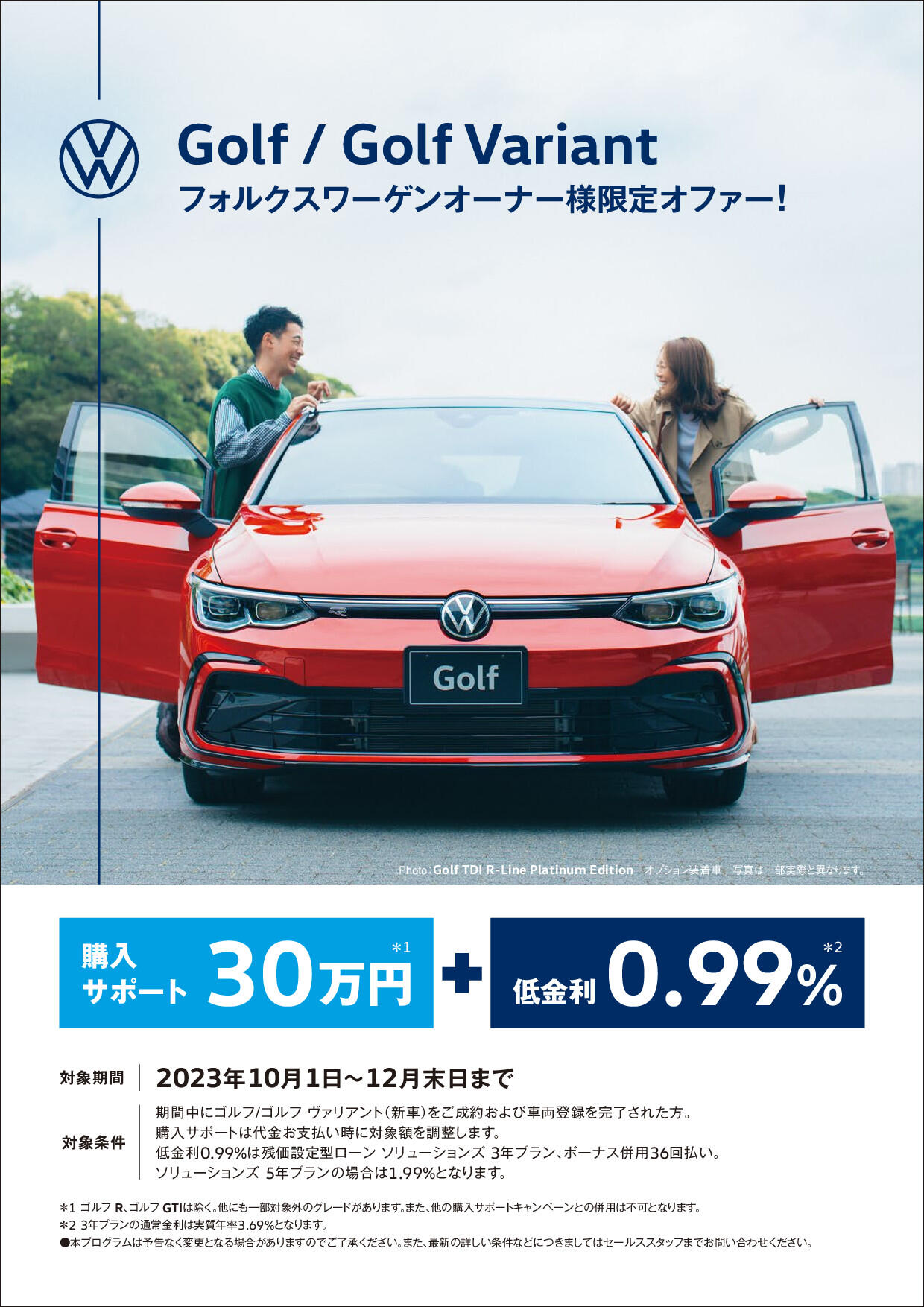 なんと新車GOLF/GOLF VARIANTに大型サポートが出ております!!!